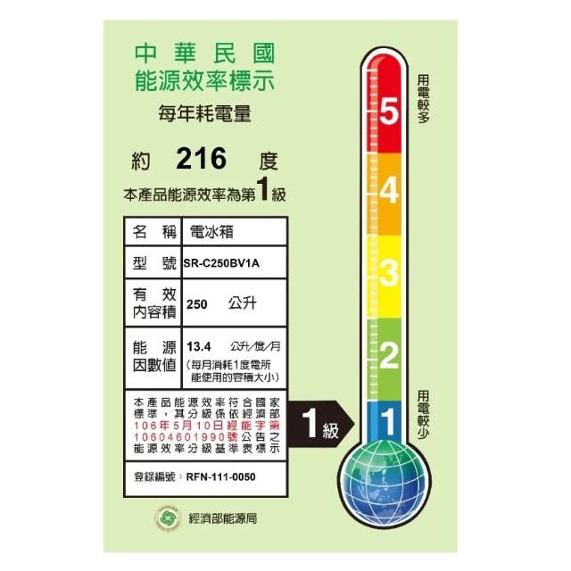 SANLUX 台灣三洋SR-C250BV1A 250公升 一級能效 窄版美型 變頻 雙門電冰箱