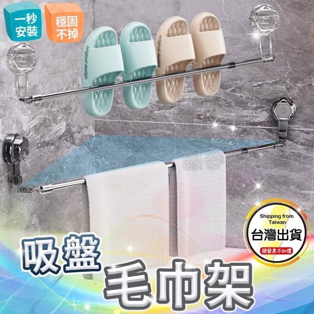 吸盤毛巾架-衛浴室免打孔壁掛浴巾架 伸縮置物架 無痕毛巾桿架 不能超取