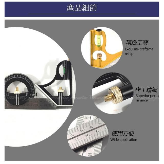 組合角尺- 多功能組合30cm角尺 不鏽鋼水平尺 直角尺 45度三角尺 180度圓規尺☆