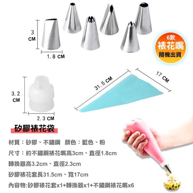 矽膠裱花袋-可重複使用擠花袋 廚房烘焙擠奶油袋 附6個不鏽鋼裱花嘴加轉換器☆豪麥網☆
