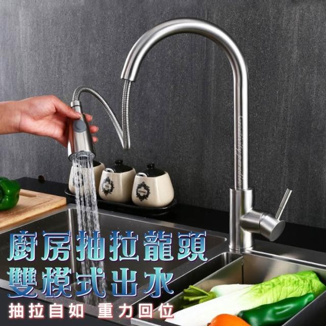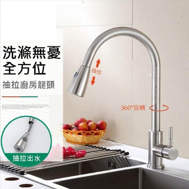 304伸縮龍頭-流理台SUS不鏽鋼無鉛水龍頭 冷熱抽拉式萬向蛇管☆豪麥網☆