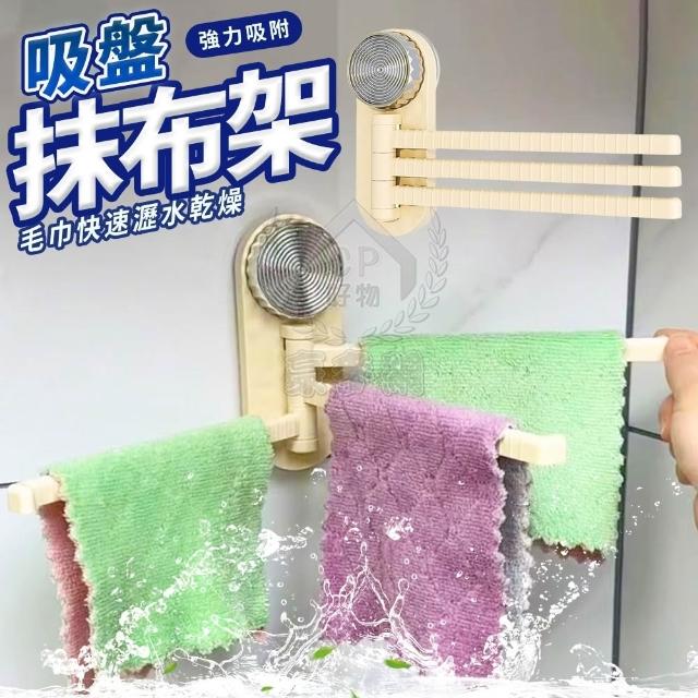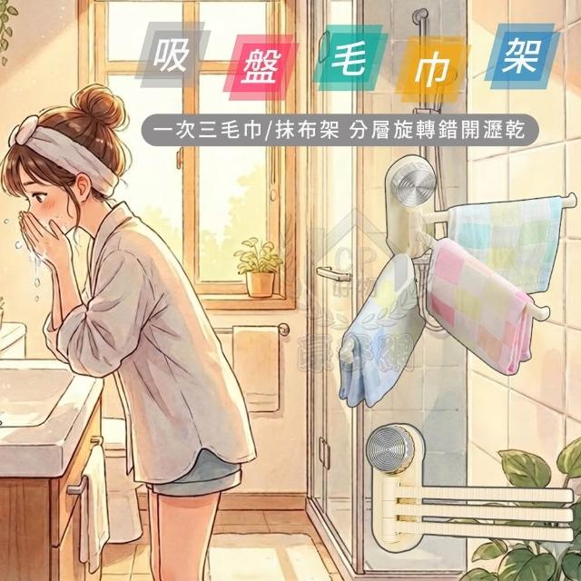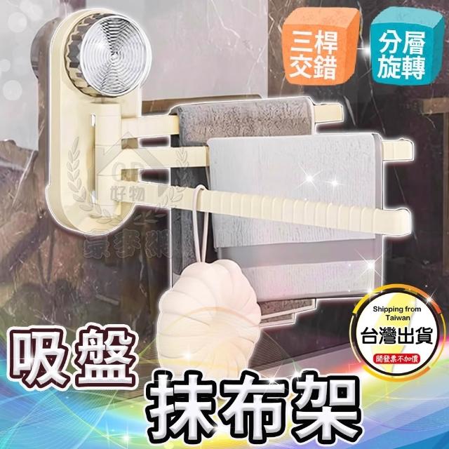 吸盤式抹布架-廚房抹布掛架 衛浴室壁掛式毛巾架 三掛桿旋轉收納架 沐浴巾置物架☆豪麥網☆