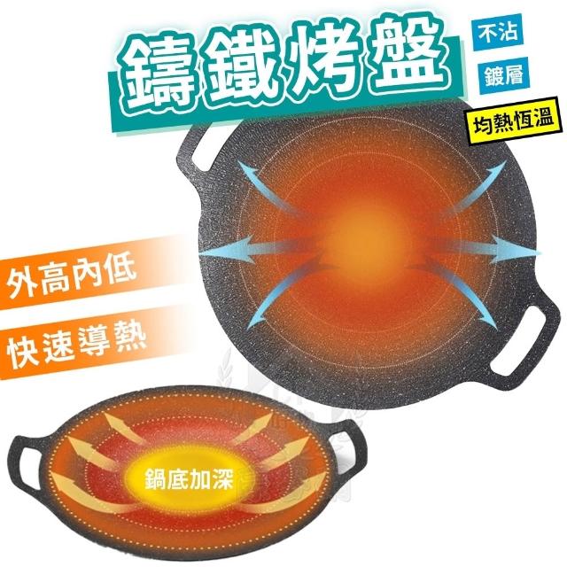 麥飯石烤盤- 韓式烤肉盤 雙耳鑄鐵烤盤 不沾烤盤 電磁爐烤盤 露營烤盤 燒烤盤☆豪麥網☆