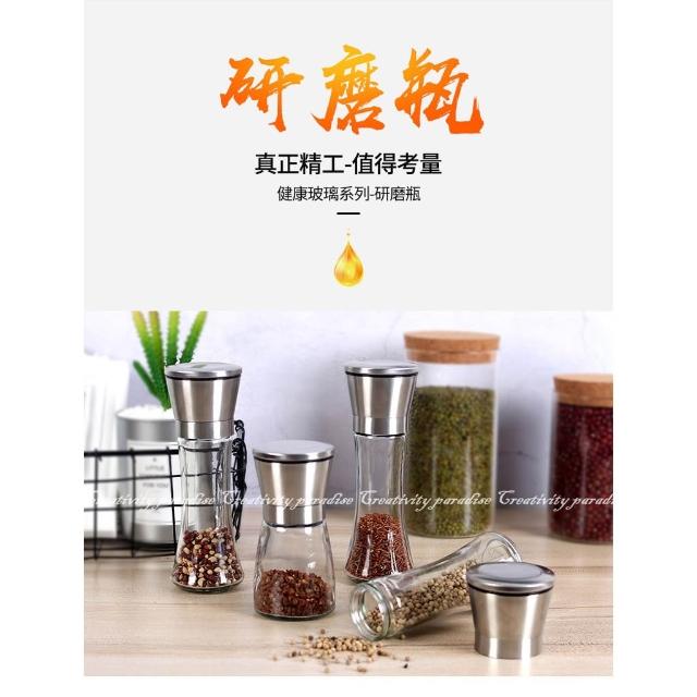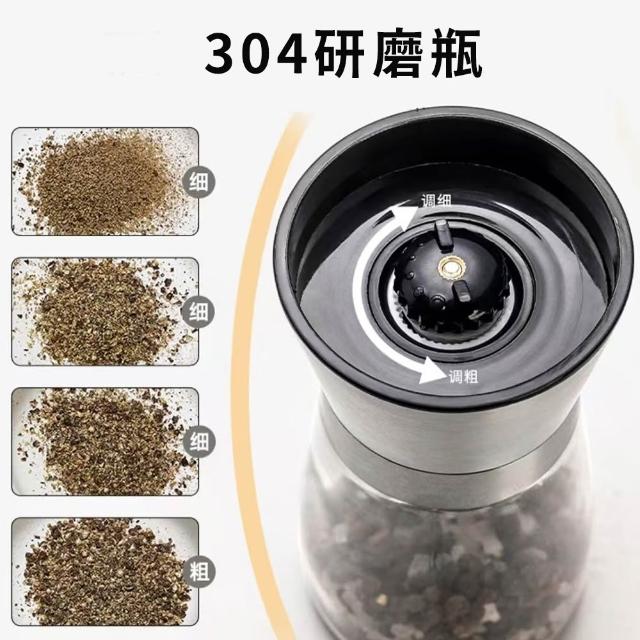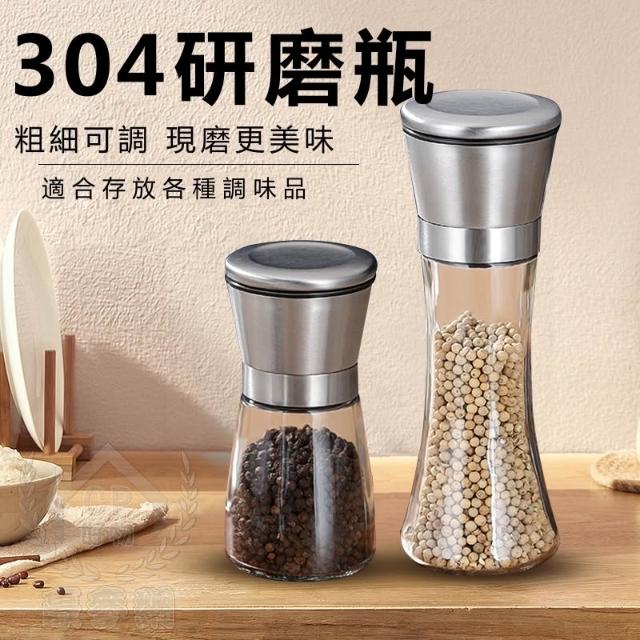 304研磨瓶-可調粗細磨粉304不銹鋼調味罐 海鹽黑胡椒無鉛玻璃手動研磨器 芝麻粗鹽 研磨罐☆豪麥網☆