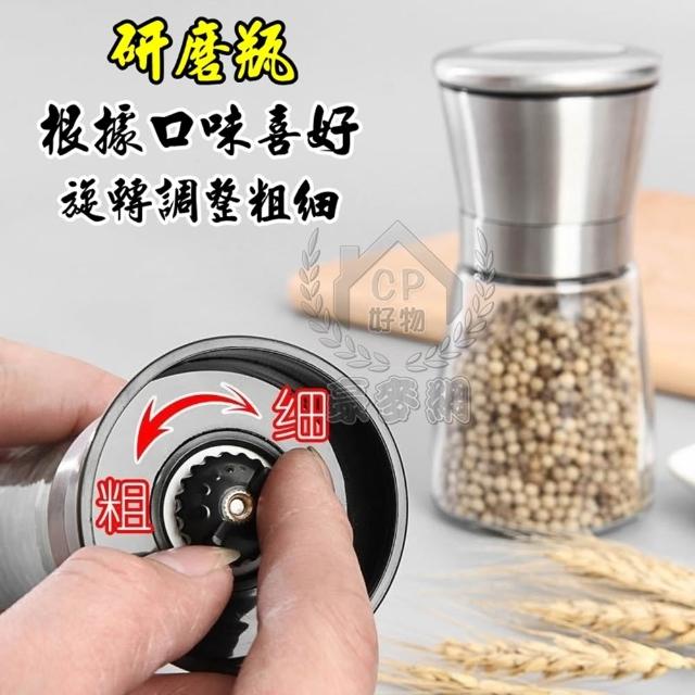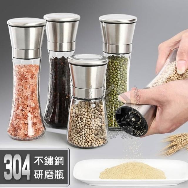304研磨瓶-可調粗細磨粉304不銹鋼調味罐 海鹽黑胡椒無鉛玻璃手動研磨器 芝麻粗鹽 研磨罐☆豪麥網☆
