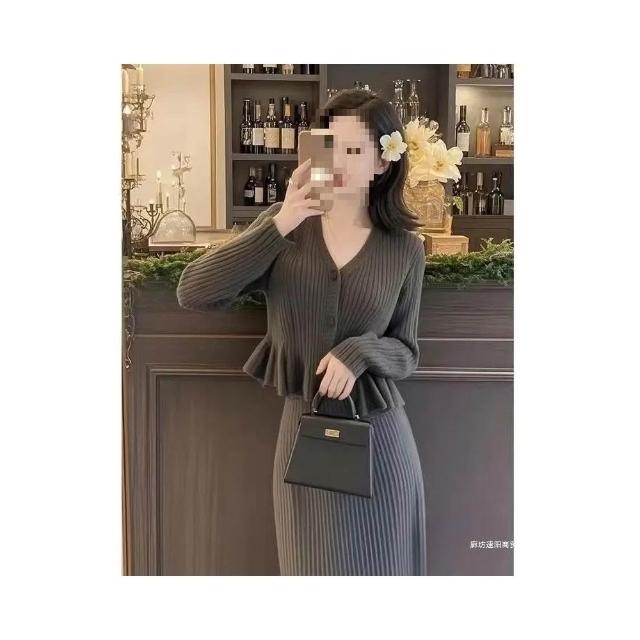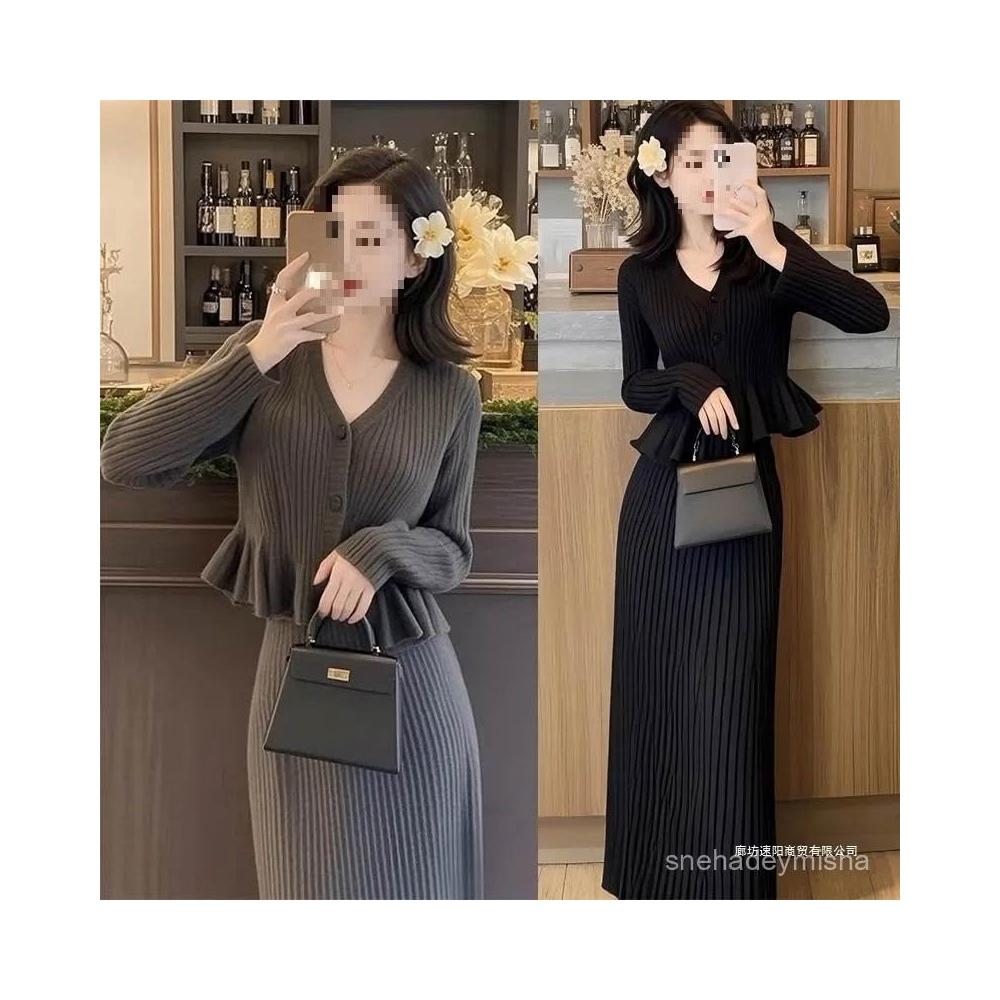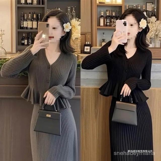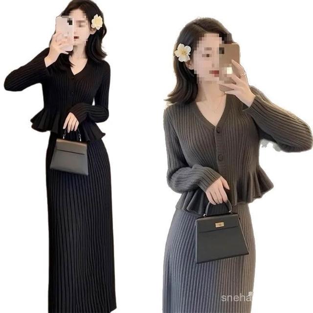 Aimeelu服飾2025初秋網紅爆款百搭 小香風領針織衫半身裙兩件套 大碼毛衣套裝 2