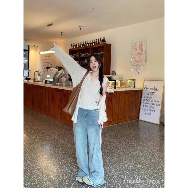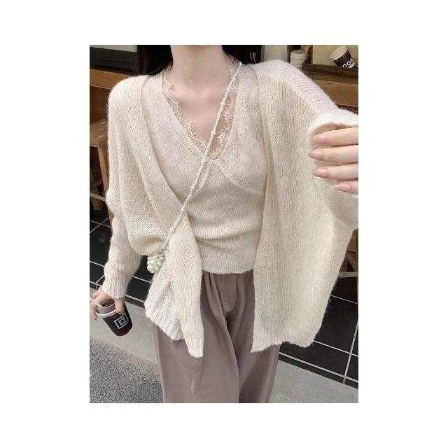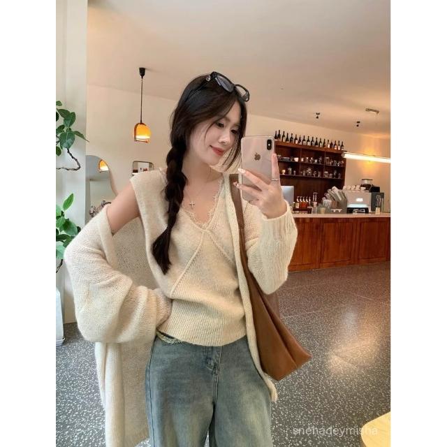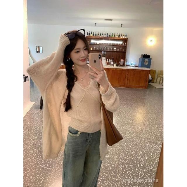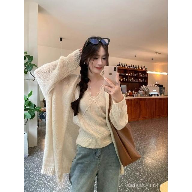 Aimeelu 早秋2025新款春秋長袖上衣寬鬆針織開衫外搭套裝 慵懶風毛衣外套女