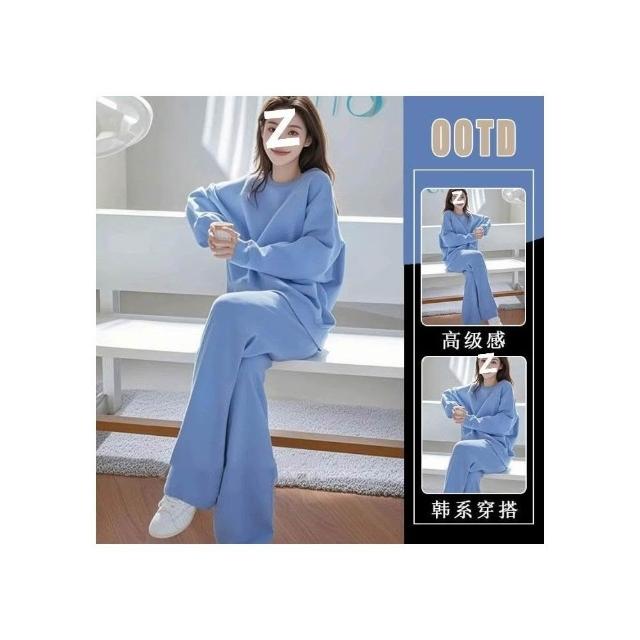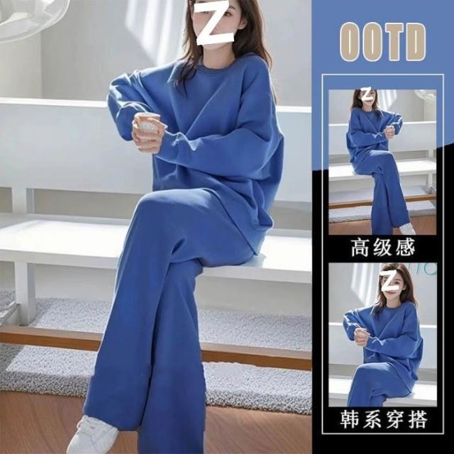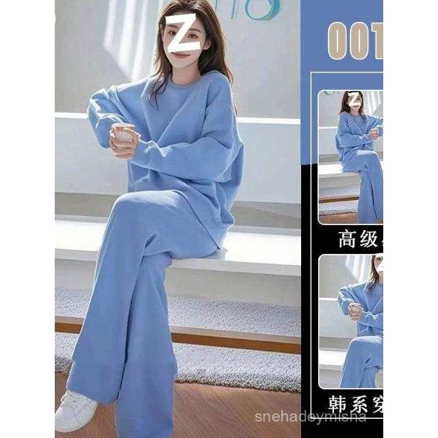 Aimeelu服飾高級感韓係一整套ootd穿搭又a又颯早秋休閒藍色衛衣套裝褲子女士