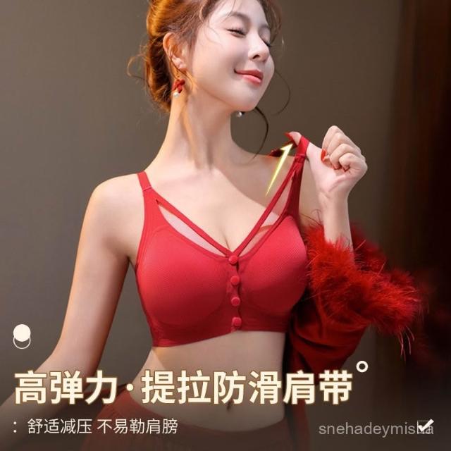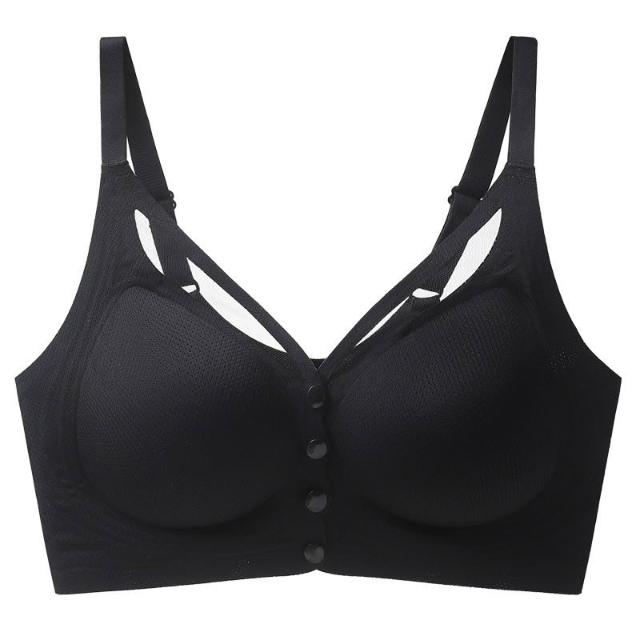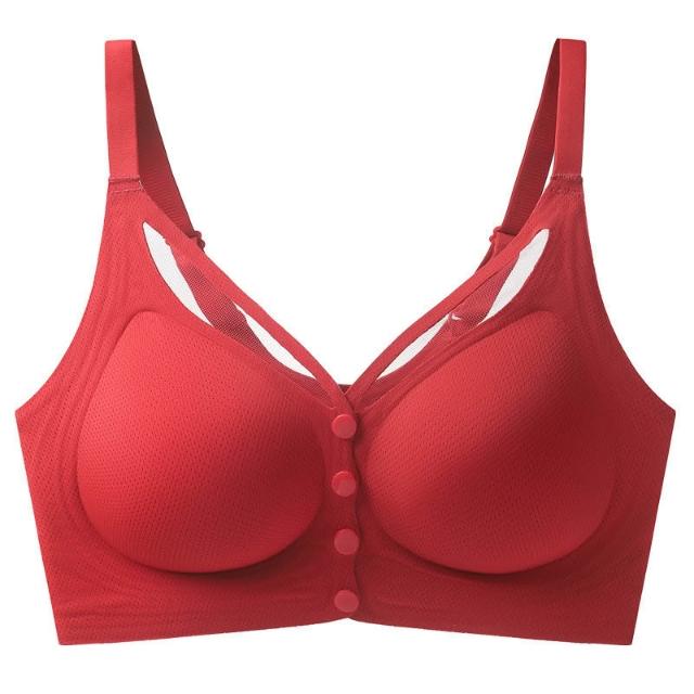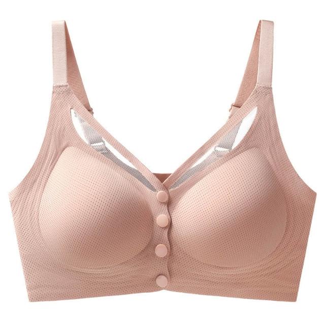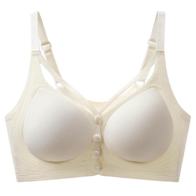 Aimeelu媽媽內衣女前開扣文胸 中年㛿無痕美背 中老年人聚攏無鋼圈大碼胸罩