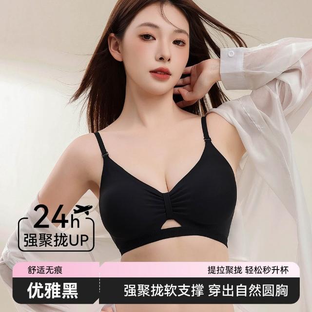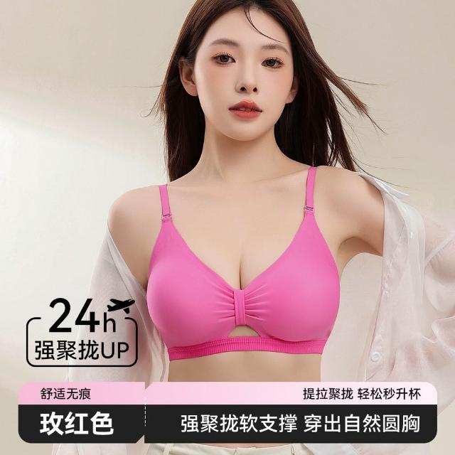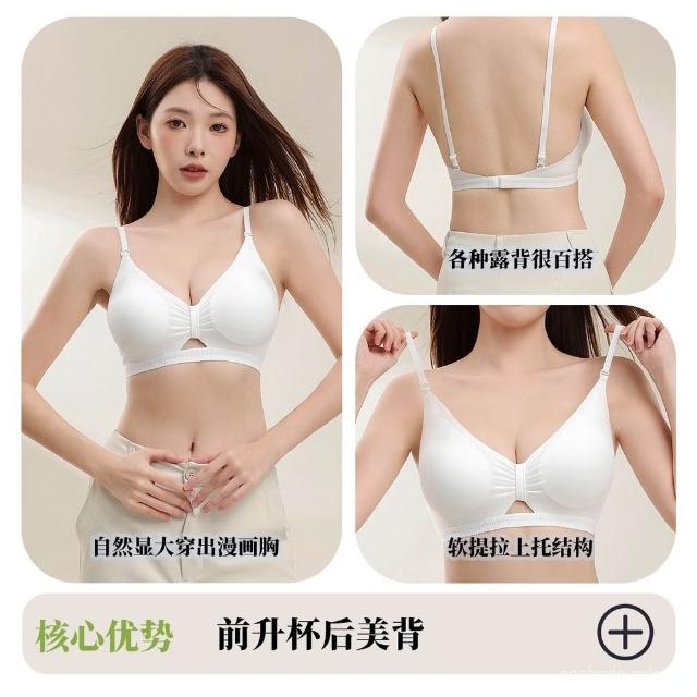 Aimeelu無痕內衣女士聚攏文胸 無鋼圈細肩帶美背聚攏小胸透氣隱形外擴胸罩