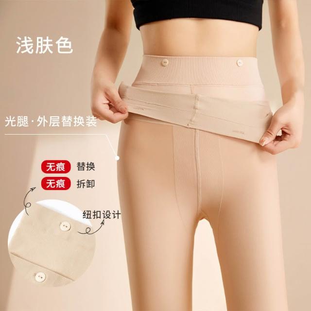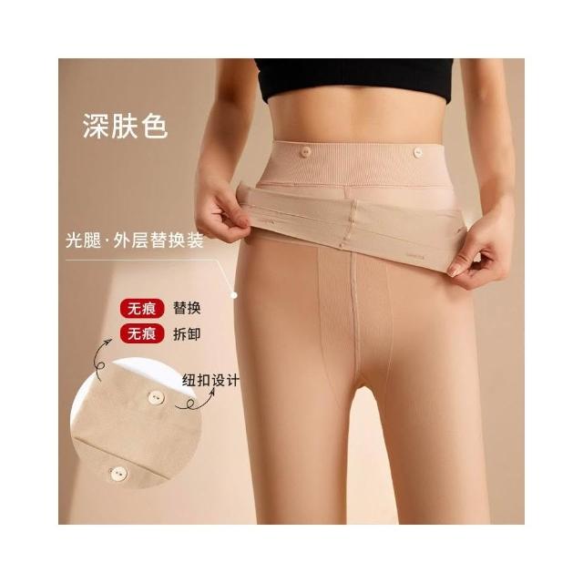 Aimeelu女秋冬自然720針雙層連褲襪加絨加厚打底褲襪 光腿神器可替換紐扣