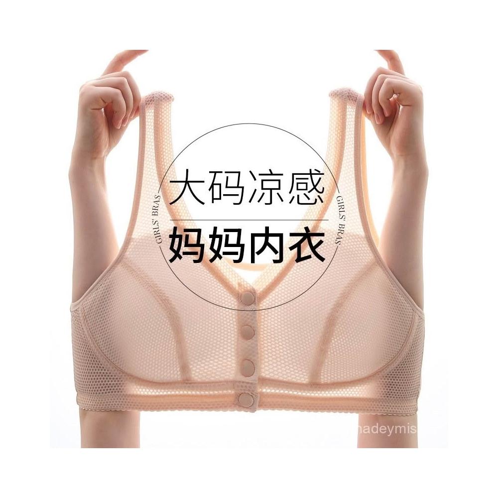 Aimeelu媽媽文胸中老年人背心式透氣胸罩 薄款大碼前開扣中年㛿女內衣 內衣文胸