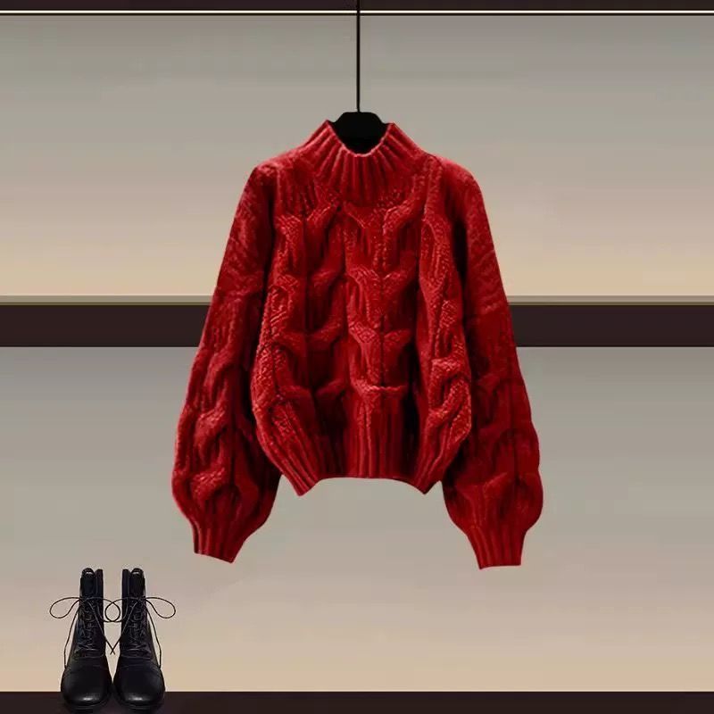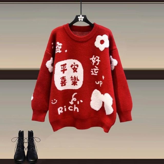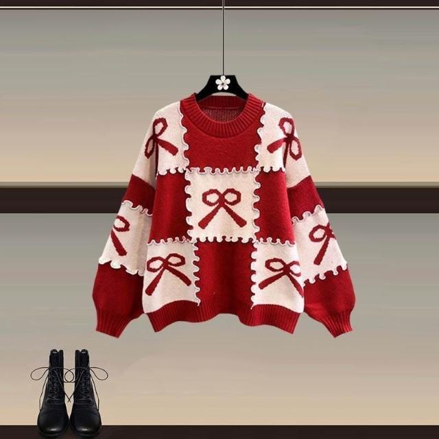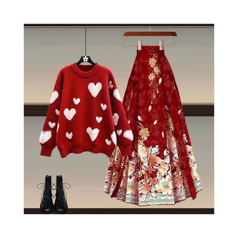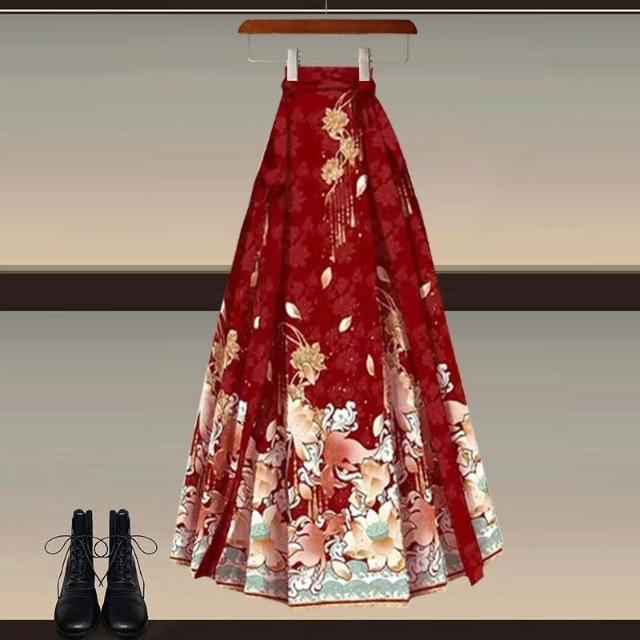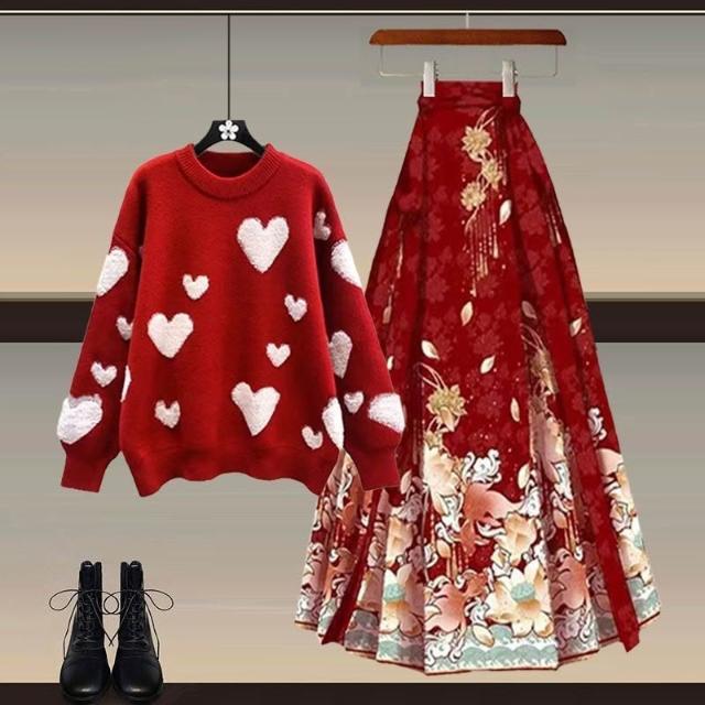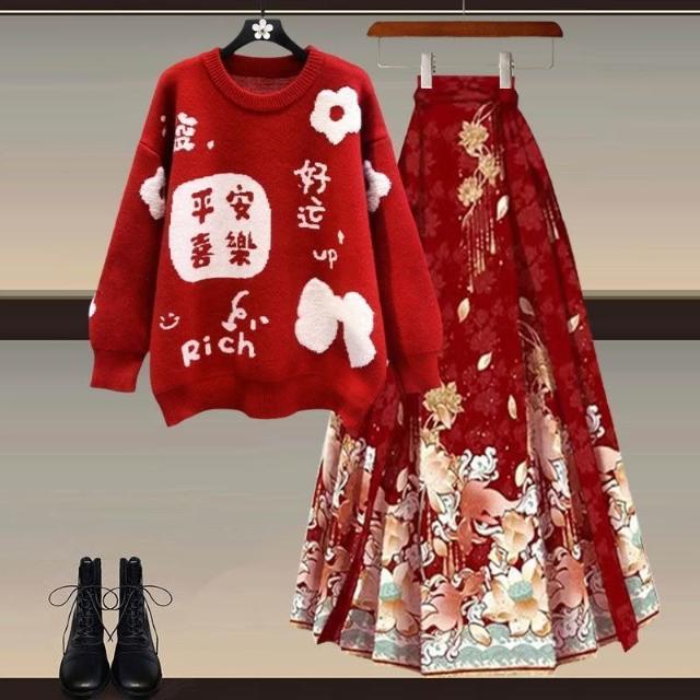 Aimeelu過年穿搭一整套 新年戰衣安可拉紅色毛衣配新中式國風馬面裙 兩件套 女裝 套裝 上衣裙子 禮盒