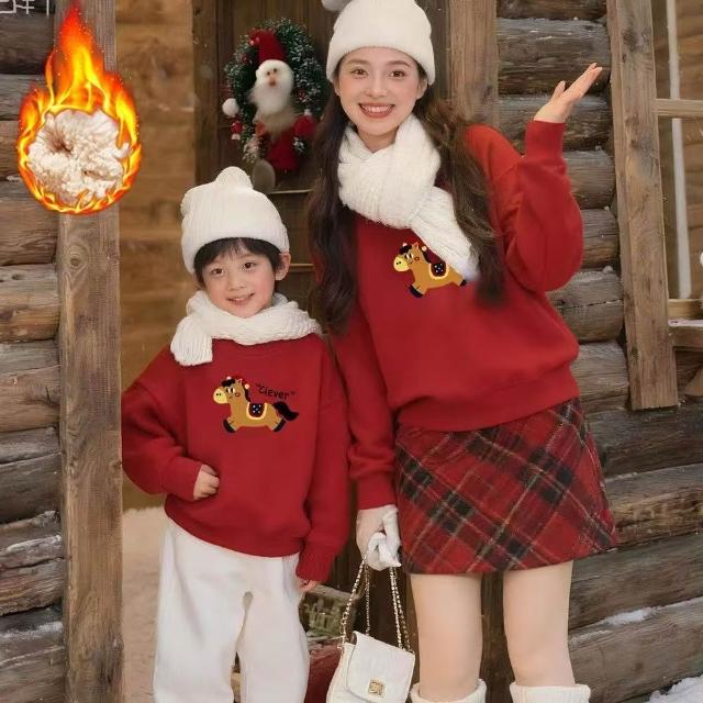 Aimeelu過年親子裝一家三口四口2026馬年新年紅色上衣秋冬兒童拜年服衛衣 過年套裝衣服年貨