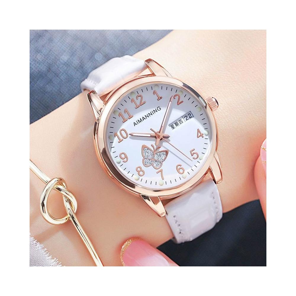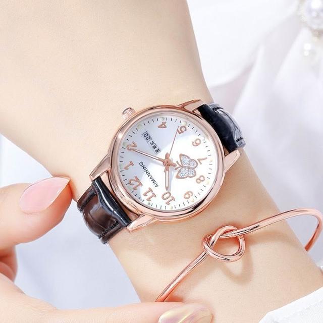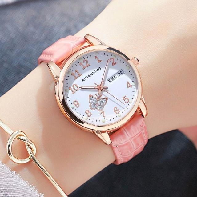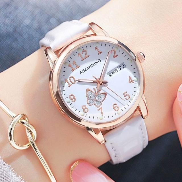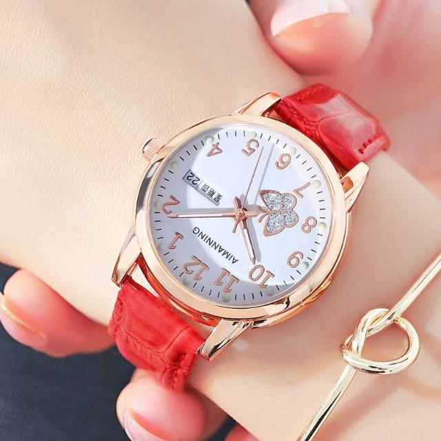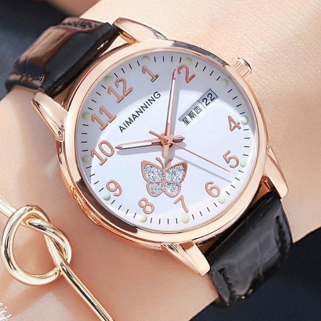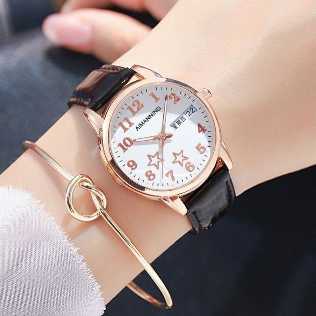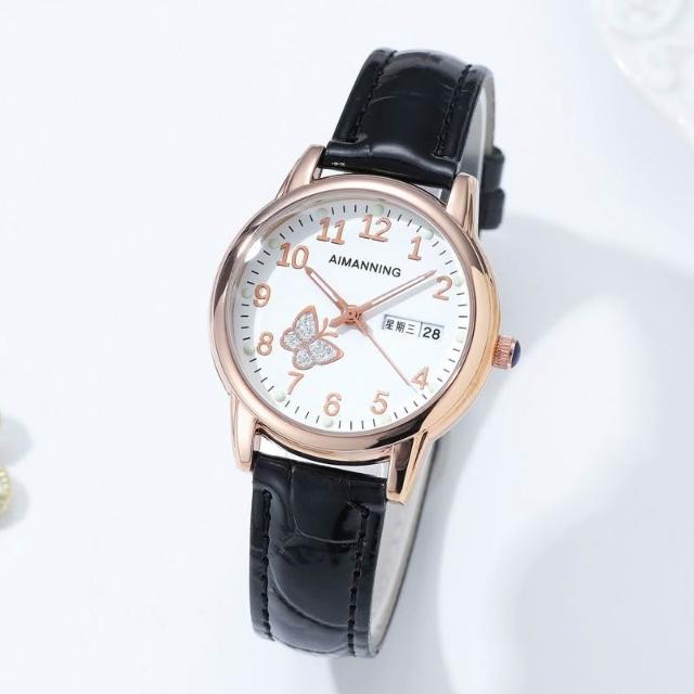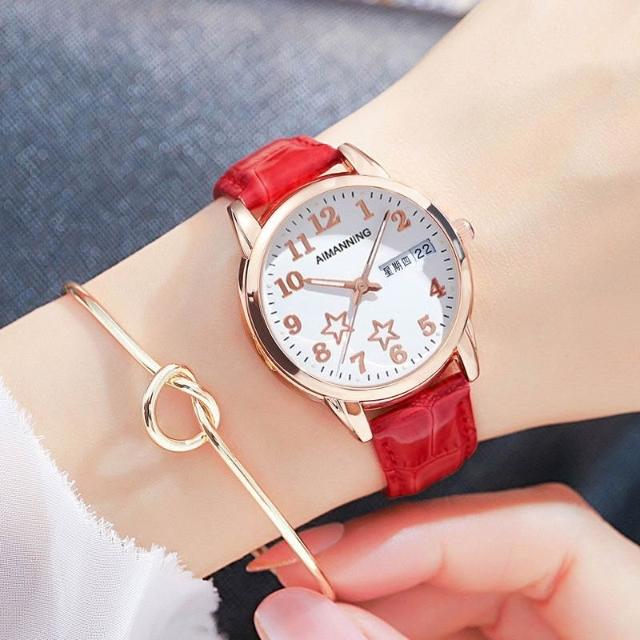 聰明甄選新款星期日曆時尚潮流女士初高中學生手錶簡約石英手錶女夜光女表