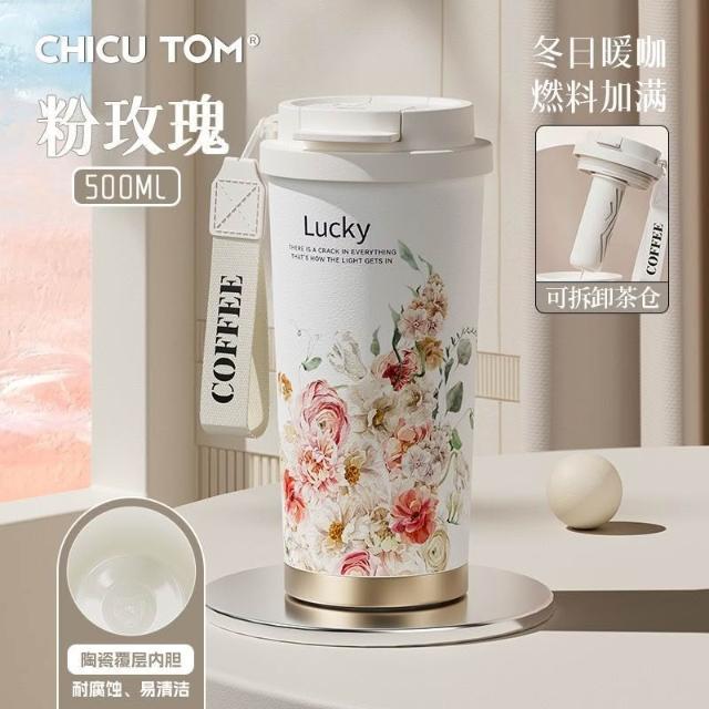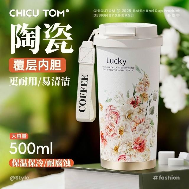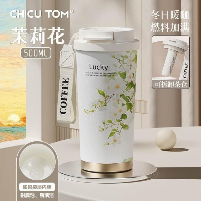 聰明甄選奇古堂保溫杯陶瓷覆層內膽辦公高顏值外出便攜咖啡杯雙飲吸管杯子