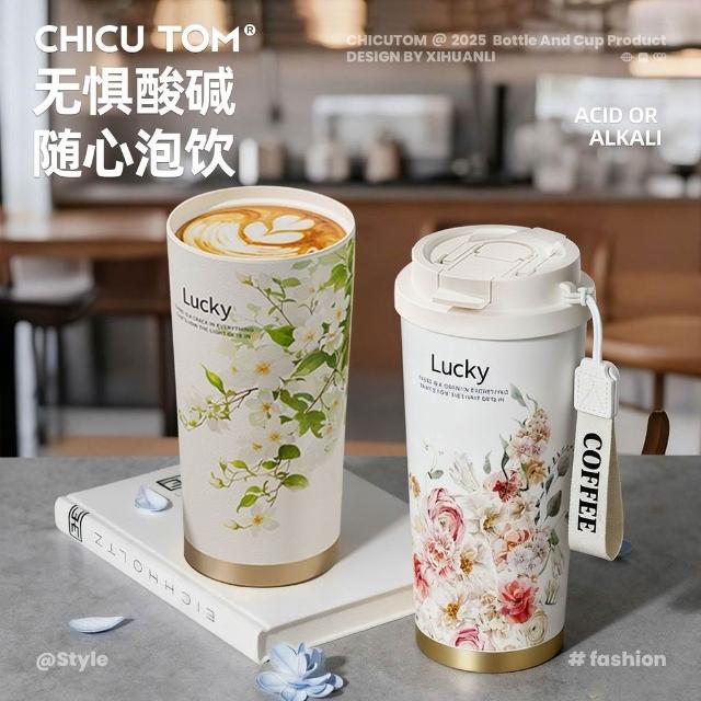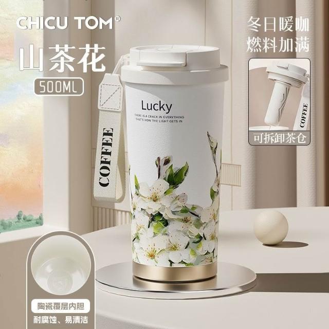 聰明甄選奇古堂保溫杯陶瓷覆層內膽辦公高顏值外出便攜咖啡杯雙飲吸管杯子