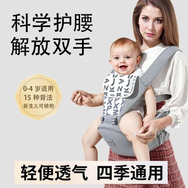 聰明甄選腰凳嬰兒輕便四季多功能揹帶抱娃神器寶寶外出前後兩用抱凳二合一