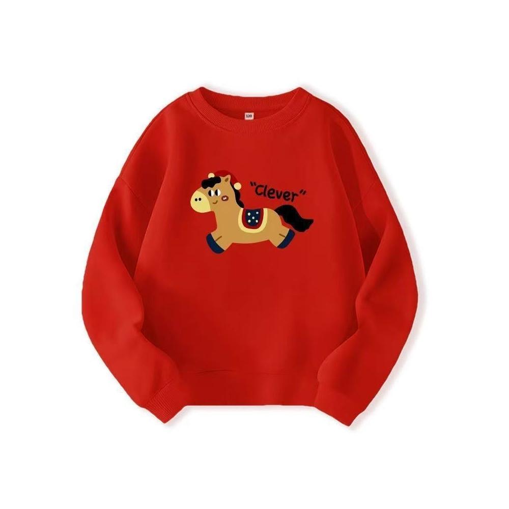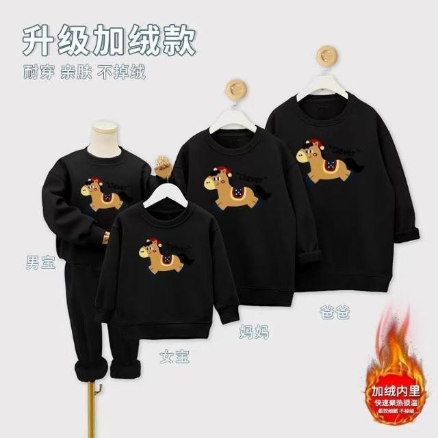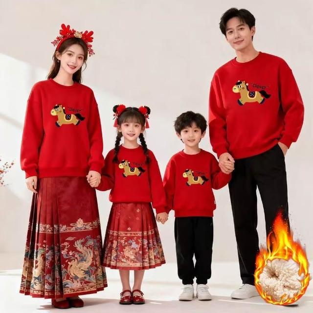 聰明甄選2026紅色馬年親子裝加絨衛衣一家三口四口母女裝家庭裝本命年衣服