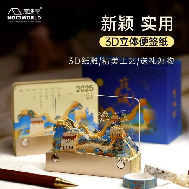 聰明甄選北京夜長城立體紙雕便籤帶燈25年日曆創意生日禮物送禮精美包裝