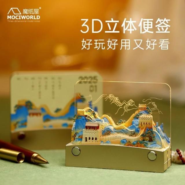聰明甄選北京夜長城立體紙雕便籤帶燈25年日曆創意生日禮物送禮精美包裝