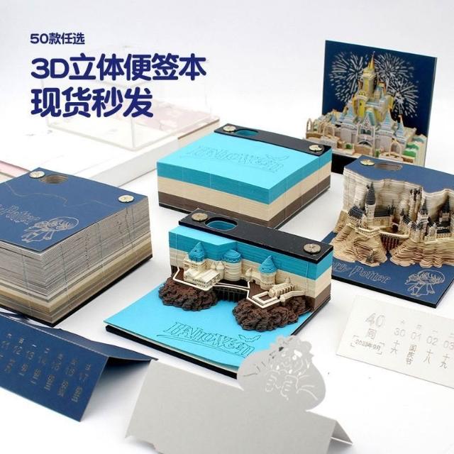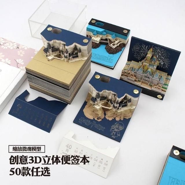 聰明甄選3D便籤本擺件解壓文藝紙雕霍格沃茲城堡DIY手撕立體日曆模型定製