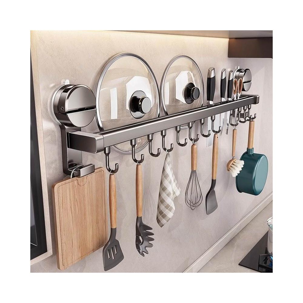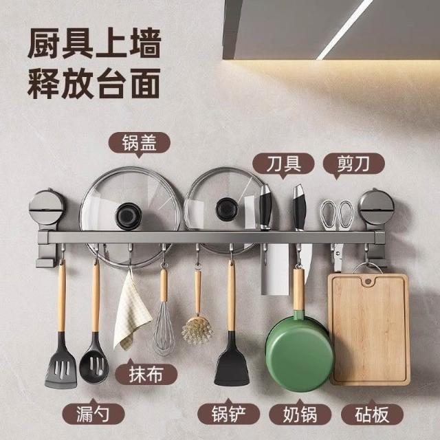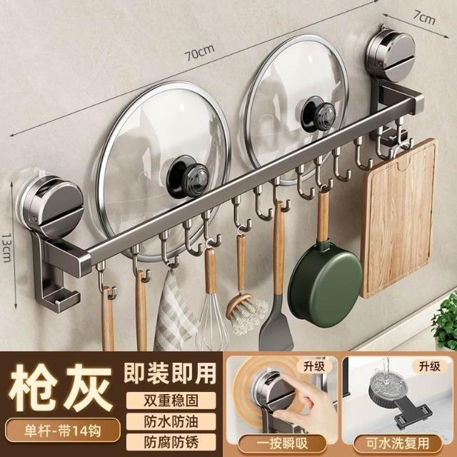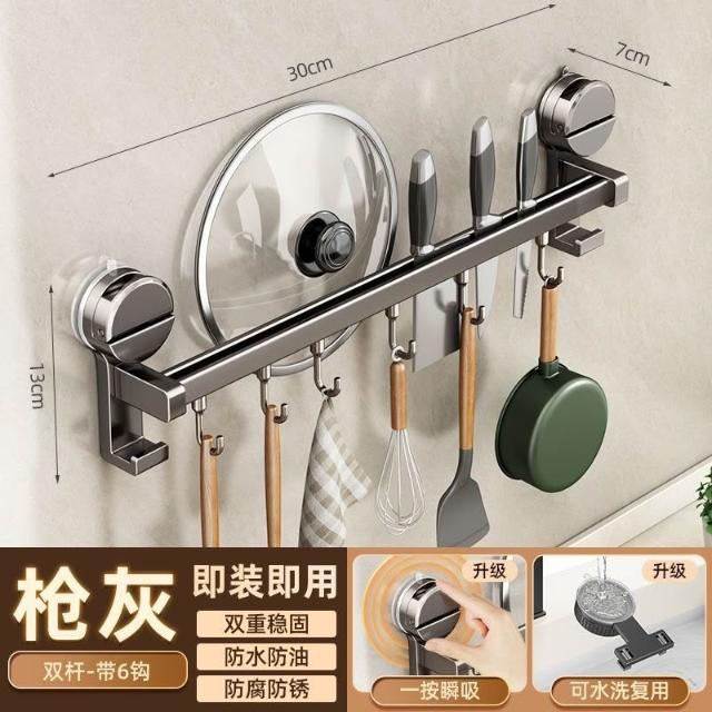 聰明甄選貝凱吸盤廚房掛鉤多功能置物架免打孔掛杆鍋蓋勺子鏟子刀架收納架
