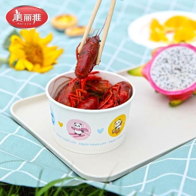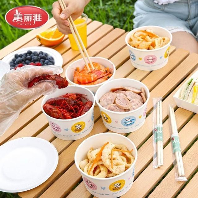 天天嚴選美麗雅一次性紙碗食品級家用打包耐高溫野餐圓形紙碗飯盒抗壓耐用