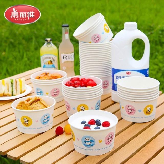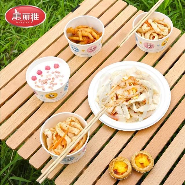 天天嚴選美麗雅一次性紙碗食品級家用打包耐高溫野餐圓形紙碗飯盒抗壓耐用