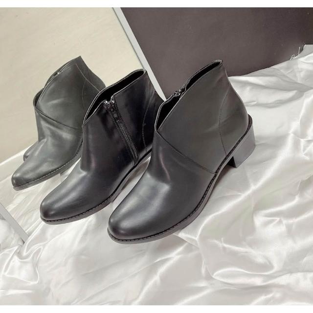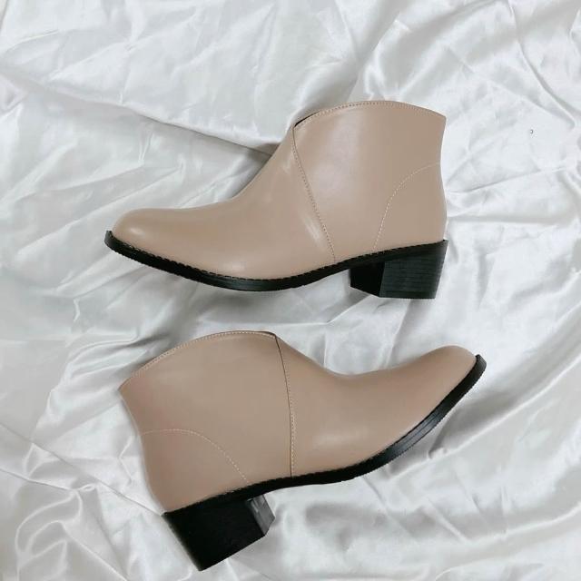 Uneed前V口裸靴 舒適斜口靴 粗跟短靴 MIT素面短靴 裸色 黑靴