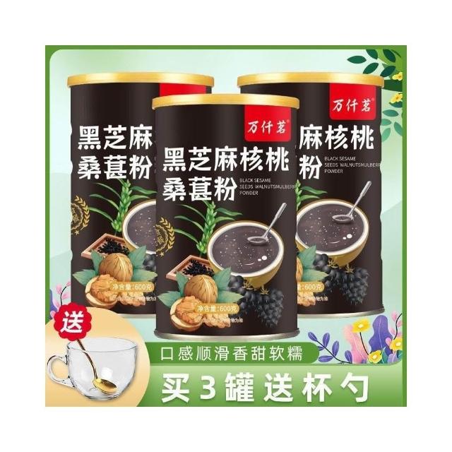新陞級600g】黑芝麻核桃桑葚粉現磨粗糧代餐無加糖低脂衝泡送杯勺