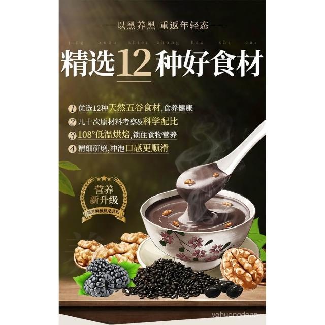 新陞級600g】黑芝麻核桃桑葚粉現磨粗糧代餐無加糖低脂衝泡送杯勺