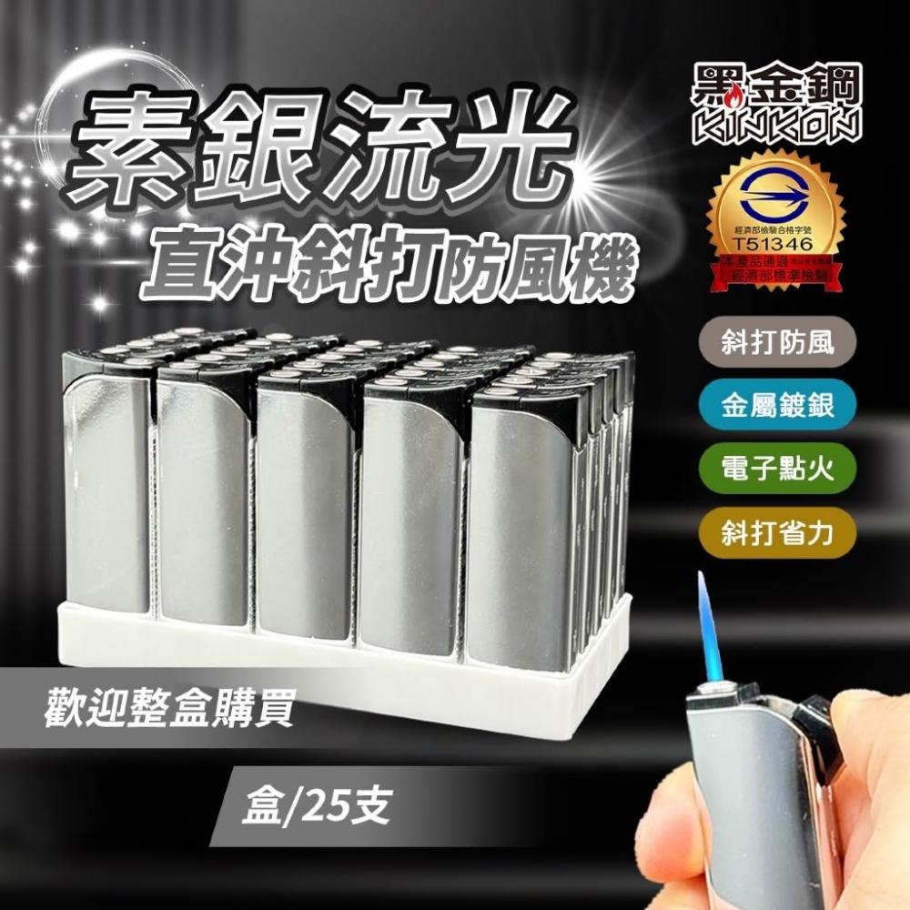 25支價格黑金鋼 素銀流光直衝斜打防風打火機 銀色打火機 打火機 防風火機 金屬鏡銀 電子火力強 斜打省力款
