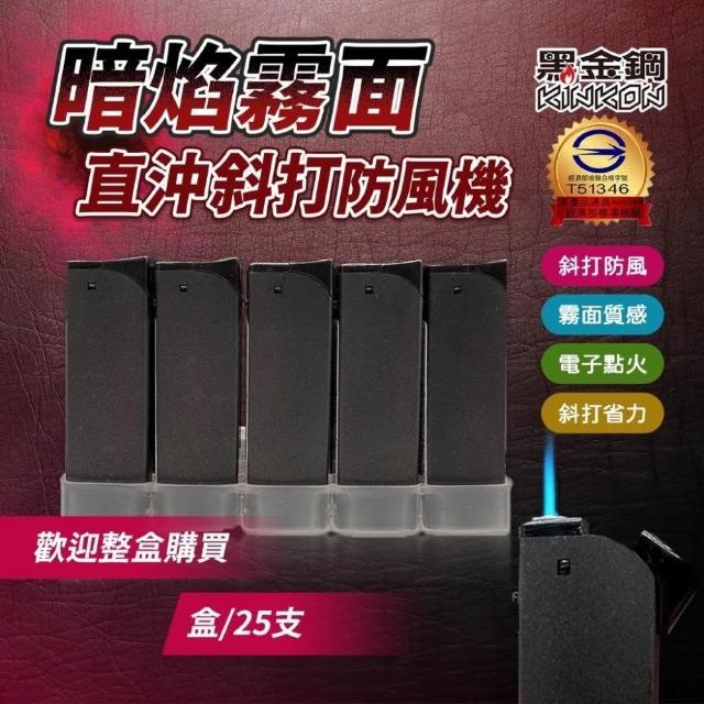 25支價格黑金鋼 打火機 霧黑 直衝火機 防風火機 斜打打火機 直衝斜打防風 電子點火 沉穩金芒 整盒販售