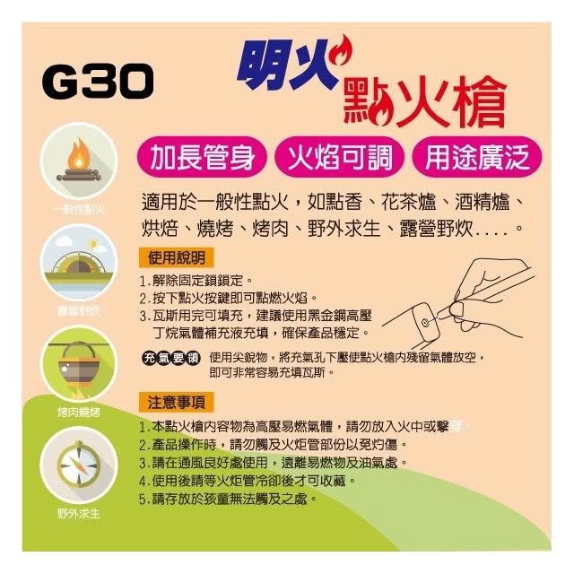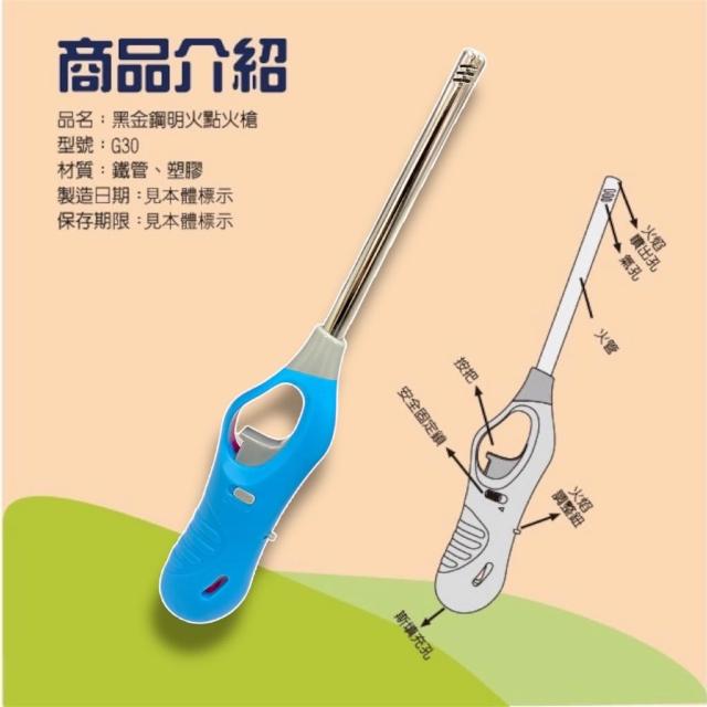 黑金鋼 明火點火槍 G30 可填充瓦斯 長管打火機 露營 烤肉 點香 蠟燭 點火器 CNS認證 安全開關