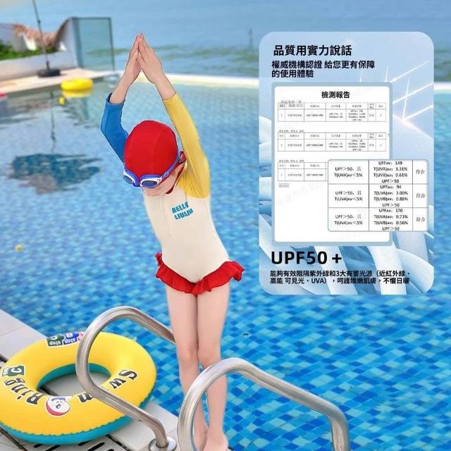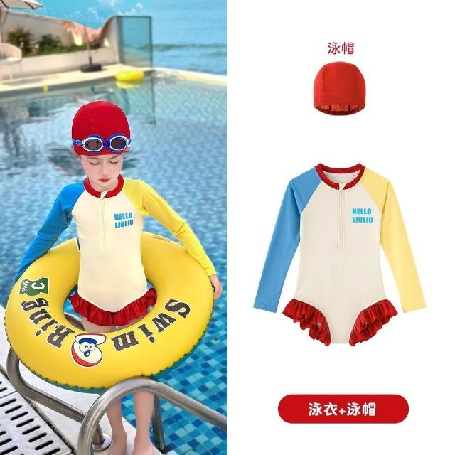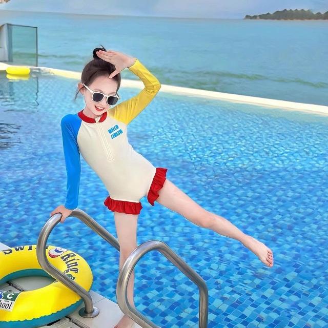 女童多巴胺2025泳衣夏季新款洋氣女孩連體泳裝兒童長袖防曬游泳衣