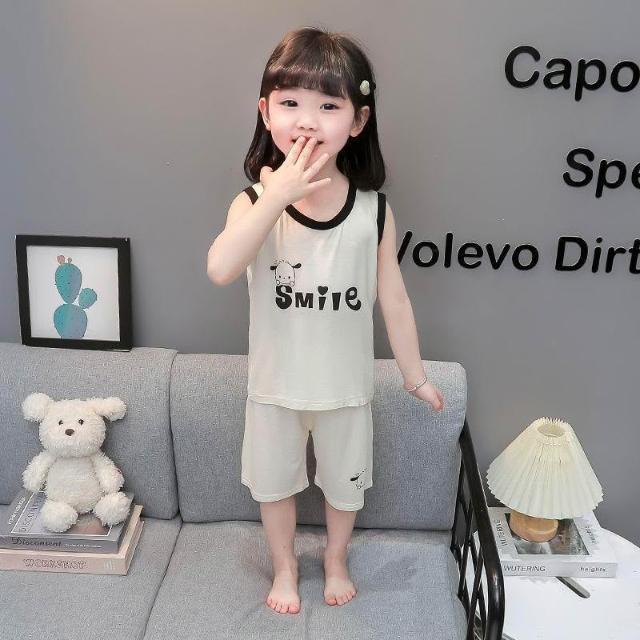 兒童冰絲睡衣夏季薄款女童卡通背心家居服套裝女孩寶寶夏天空調服