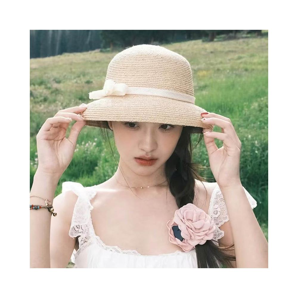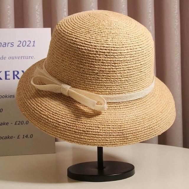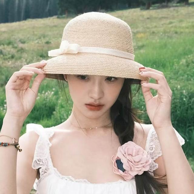 優先購藤井樹同款高品質赫本風進口拉菲草帽子女款夏天遮陽防曬度假盆帽