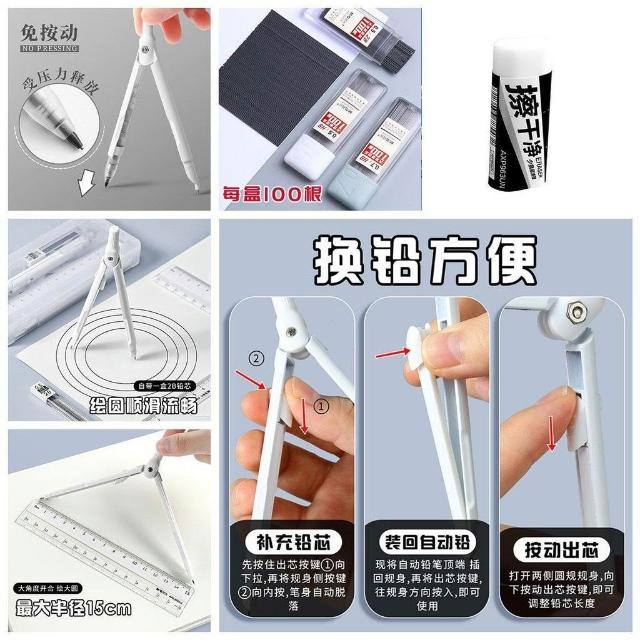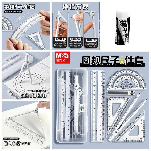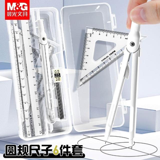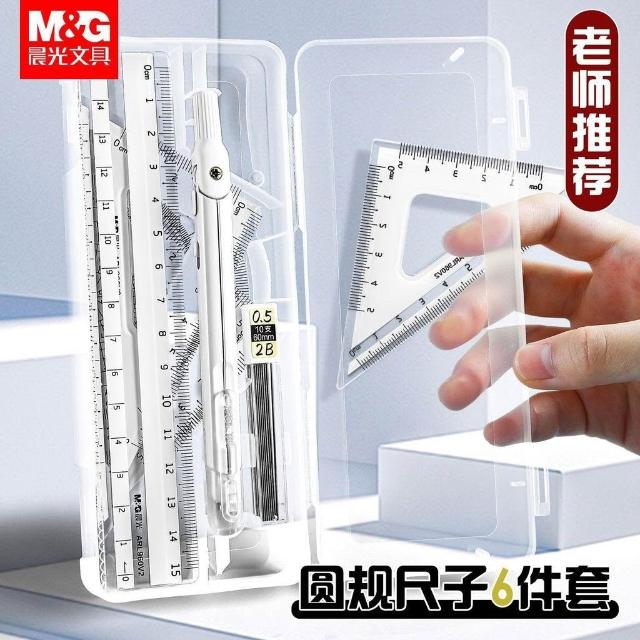 贝贝優選晨光筆型圓規冇系列尺規套裝學生考試繪圖專用便攜金屬圓規套尺子