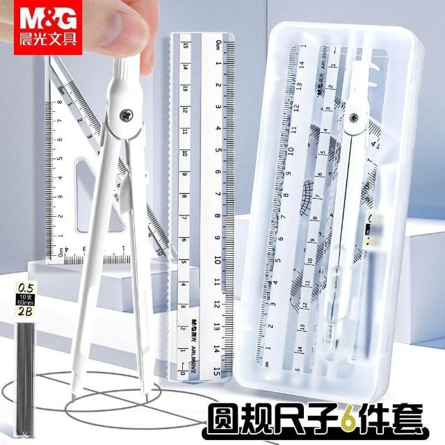 贝贝優選晨光筆型圓規冇系列尺規套裝學生考試繪圖專用便攜金屬圓規套尺子