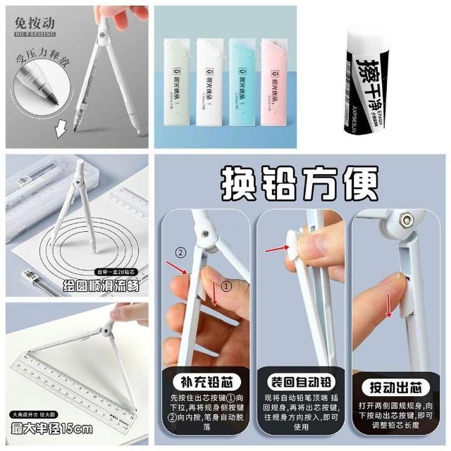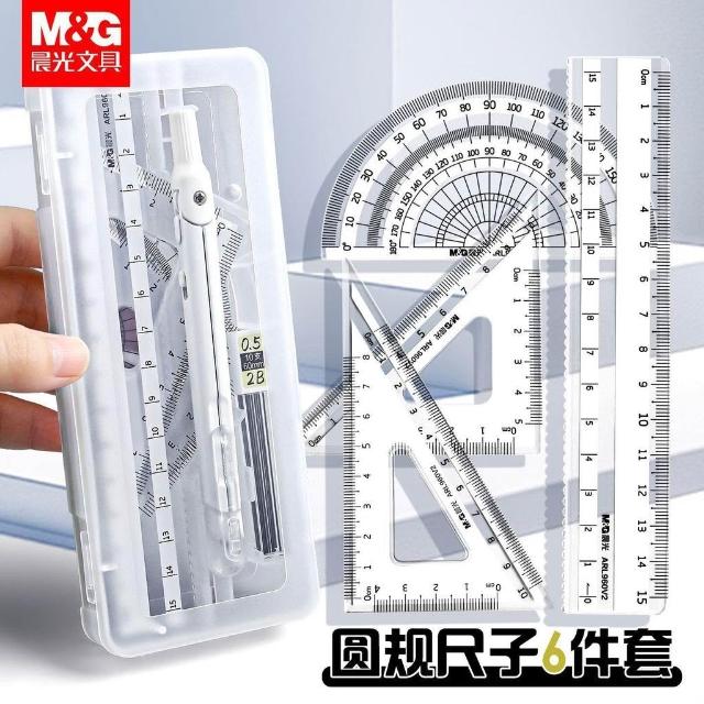 贝贝優選晨光筆型圓規冇系列尺規套裝學生考試繪圖專用便攜金屬圓規套尺子
