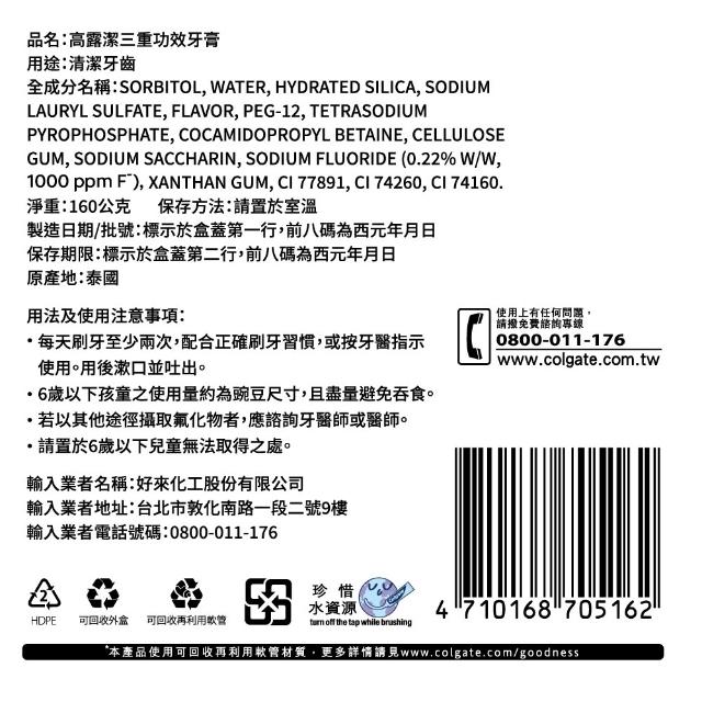 Colgate 高露潔三重功效牙膏160g|誠意中西藥局