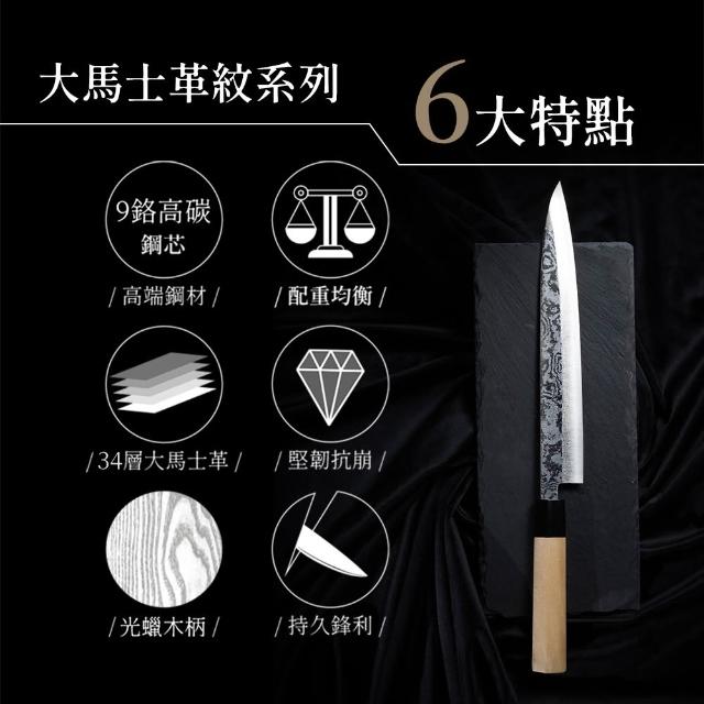 YETECH 葉添紋系列|柳刃|大馬士革|九鉻鋼|34層夾鋼|單刃195mm|生魚刀