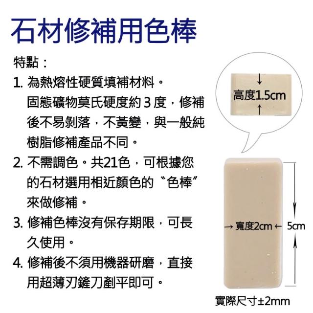 石材修補用色棒 - 石材、磁磚的小孔洞、小裂縫、接縫 修復 修補