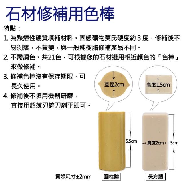 石材修補用色棒 - 石材、磁磚的小孔洞、小裂縫、接縫 修復 修補