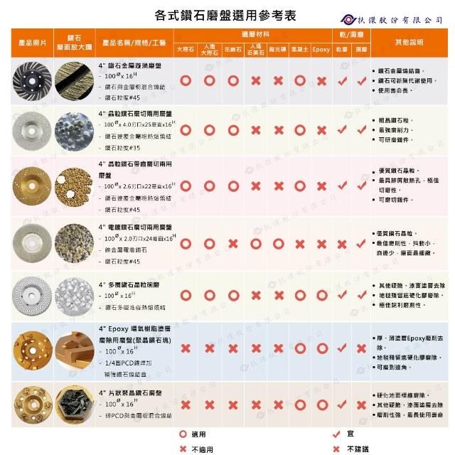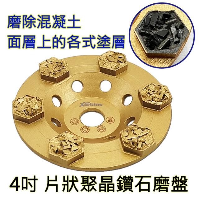 4吋片狀聚晶鑽石磨盤 碗磨/磨除水泥上Epoxy, 標線, 老舊塗層, 鬆軟風化表層 / 極佳動平衡