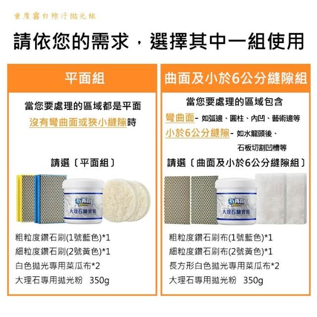 大理石保養拋光DIY - 重度霧白除汙拋光組 - 可除清潔劑酸蝕白痕、重度水垢皂垢、輕刮傷
