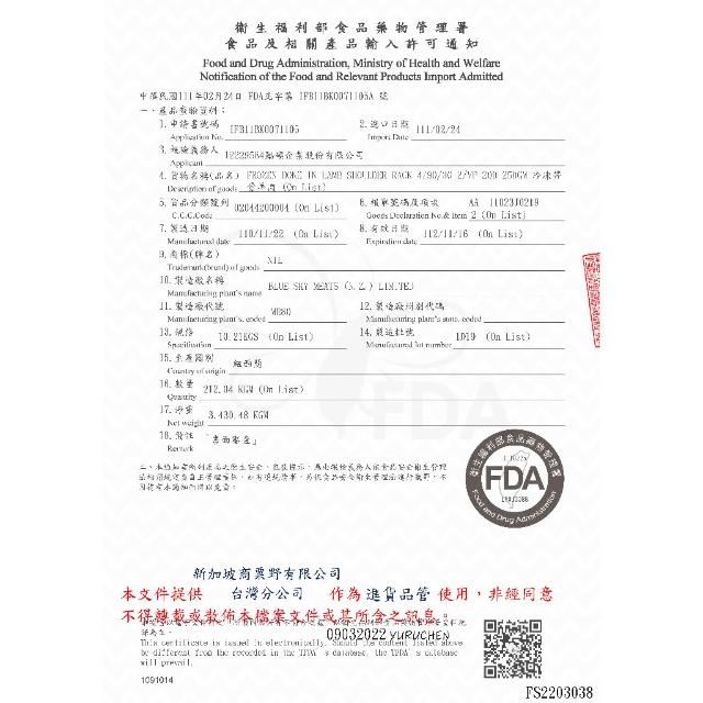 點食衣紐西蘭羔羊肩小排(八支) 550G±5%/