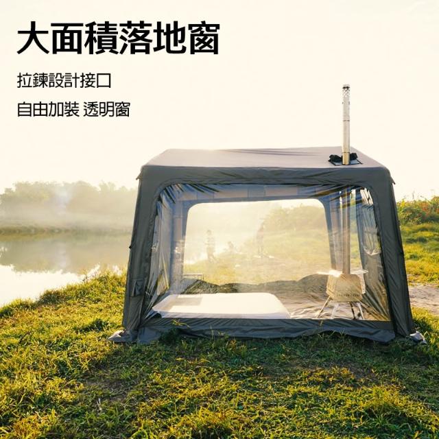 充氣帳 充氣帳篷 帳篷 超輕量充氣帳 鈦黑膠充氣帳 5000+防水係數 大面積落地窗設計 拉鍊擴充系統 充氣帳 底布