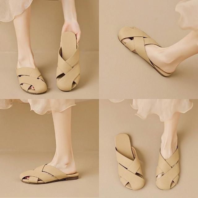 SOLE覓 啞光質感編織穆勒鞋 穆勒鞋女 穆勒鞋大尺碼 荔枝紋理